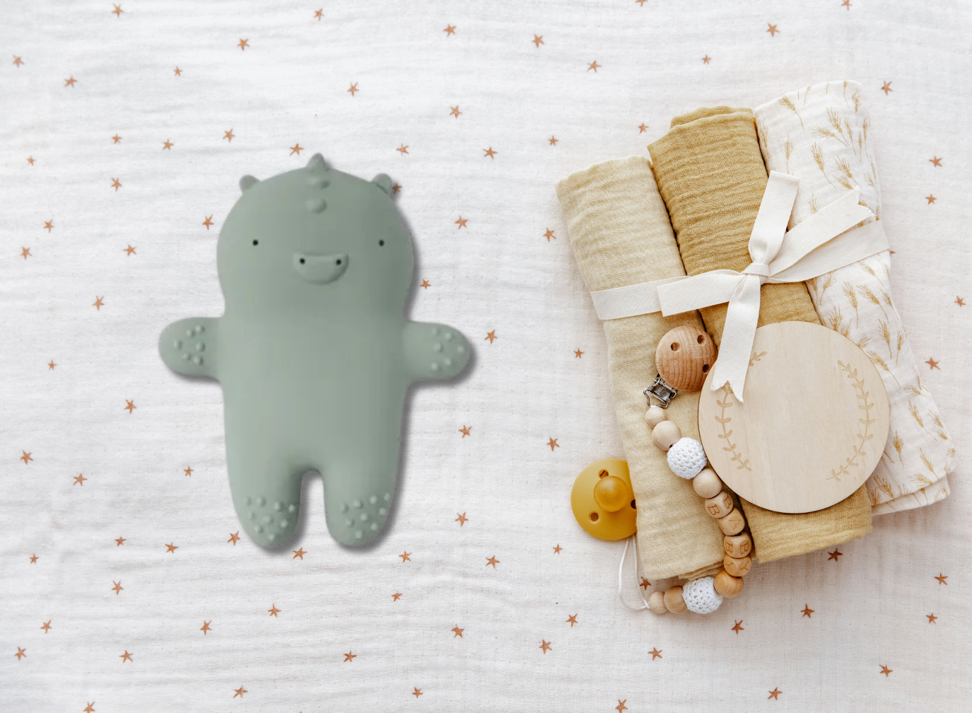 Ce dino en hévéa soulage les douleurs de votre bébé liées aux poussées dentaires de manière naturelle. Cet adorable anneau de dentition est spécialement conçu pour apaiser les gencives sensibles des tout-petits tout en stimulant leur développement sensoriel. Il offre une alternative sûre et écologique aux anneaux de dentition traditionnels
