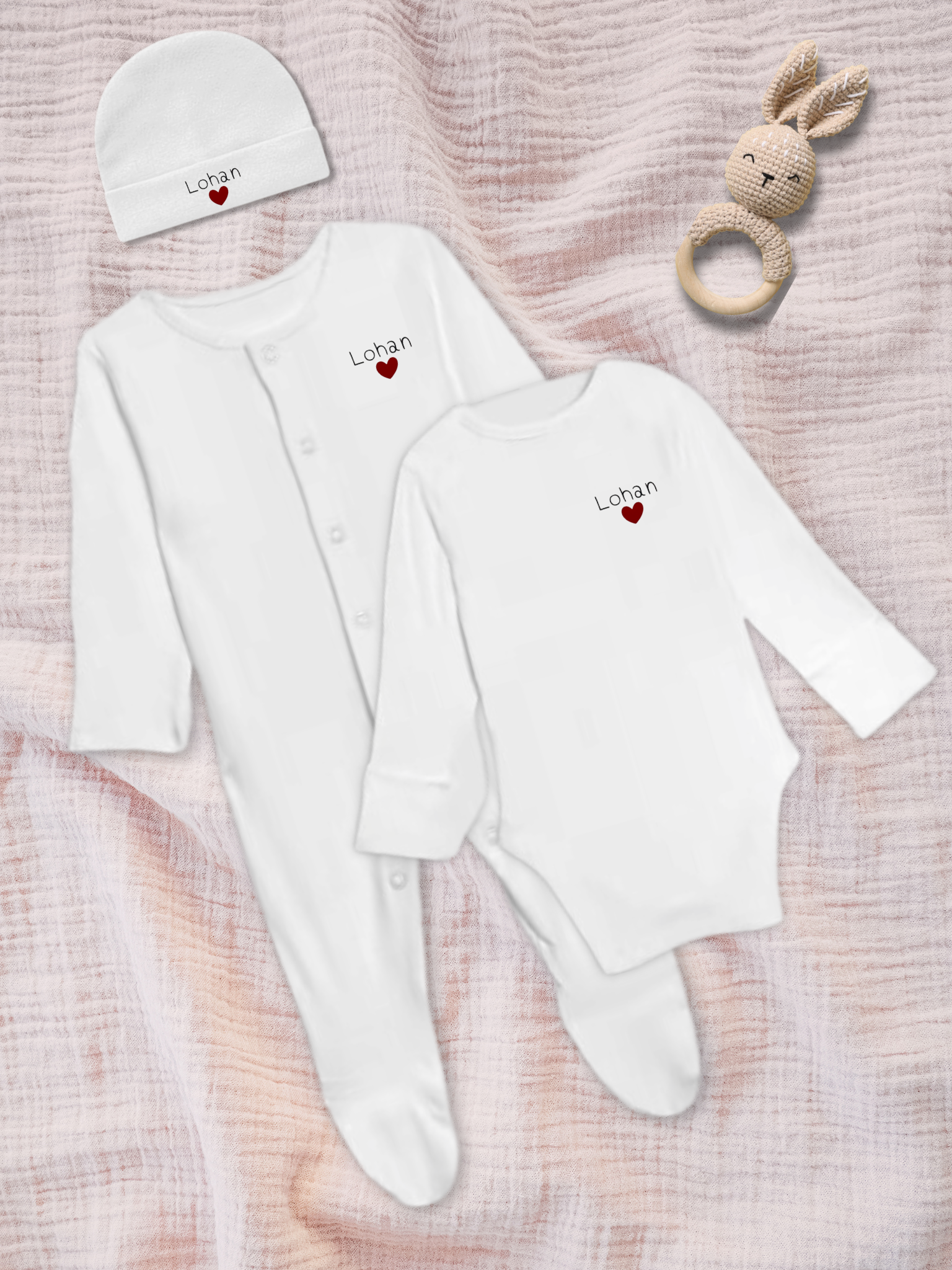 Offrez à votre nouveau-né un ensemble de naissance unique avec son prénom ! Cet ensemble doux et confortable est parfait pour accueillir votre bébé tout en marquant son arrivée avec une touche unique et spéciale. Parfait pour sa première photo et s'il fait très chaud !