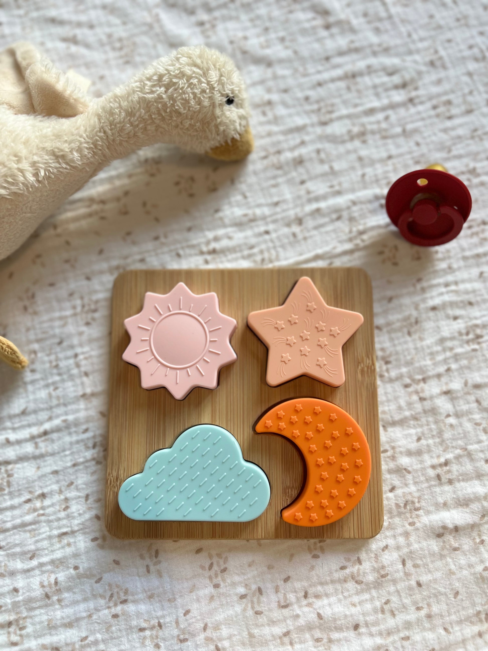 Initiez votre enfant à l’univers des formes et des couleurs avec nos puzzles d’éveil conçus pour stimuler la motricité fine et la réflexion. Composés de pièces aux formes variées, colorées et texturés, ces puzzles favorisent l’apprentissage de la coordination main-œil et encouragent la curiosité des tout-petits. Fabriqués en matériaux sûrs et durables, chaque pièce est facile à manipuler, adaptée aux petites mains, et conçue pour durer.