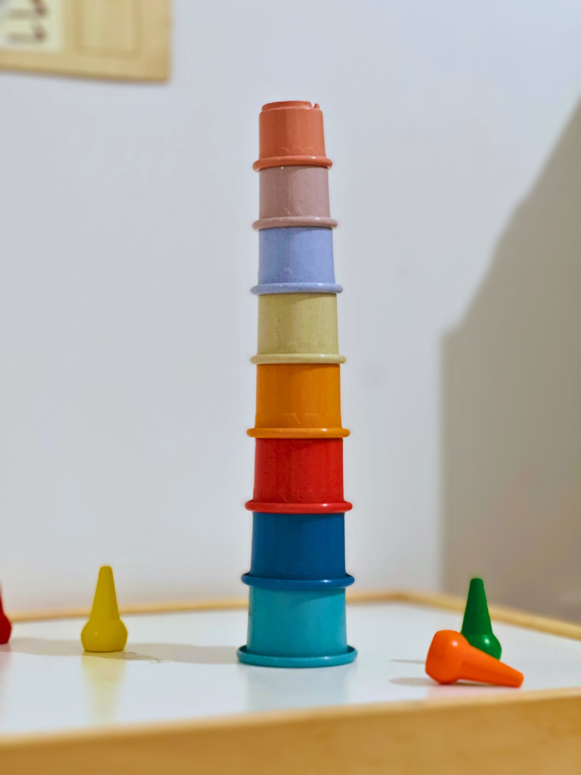 Laissez votre enfant s’amuser tout en développant sa coordination et sa motricité fine avec nos tasses empilables ! Ces tasses colorées et faciles à manipuler sont conçues pour être empilées, retournées, et même utilisées pour jouer avec de l'eau. Elles stimulent également la créativité et l’apprentissage des formes et des tailles.